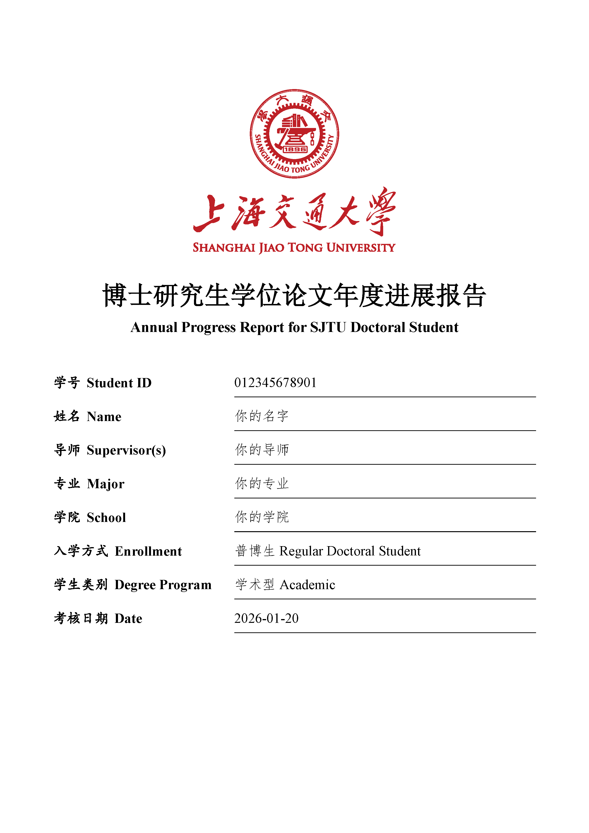 | 📊 年度进展 | 上海交通大学博士研究生学位论文年度进展报告 | 0.1.0 |