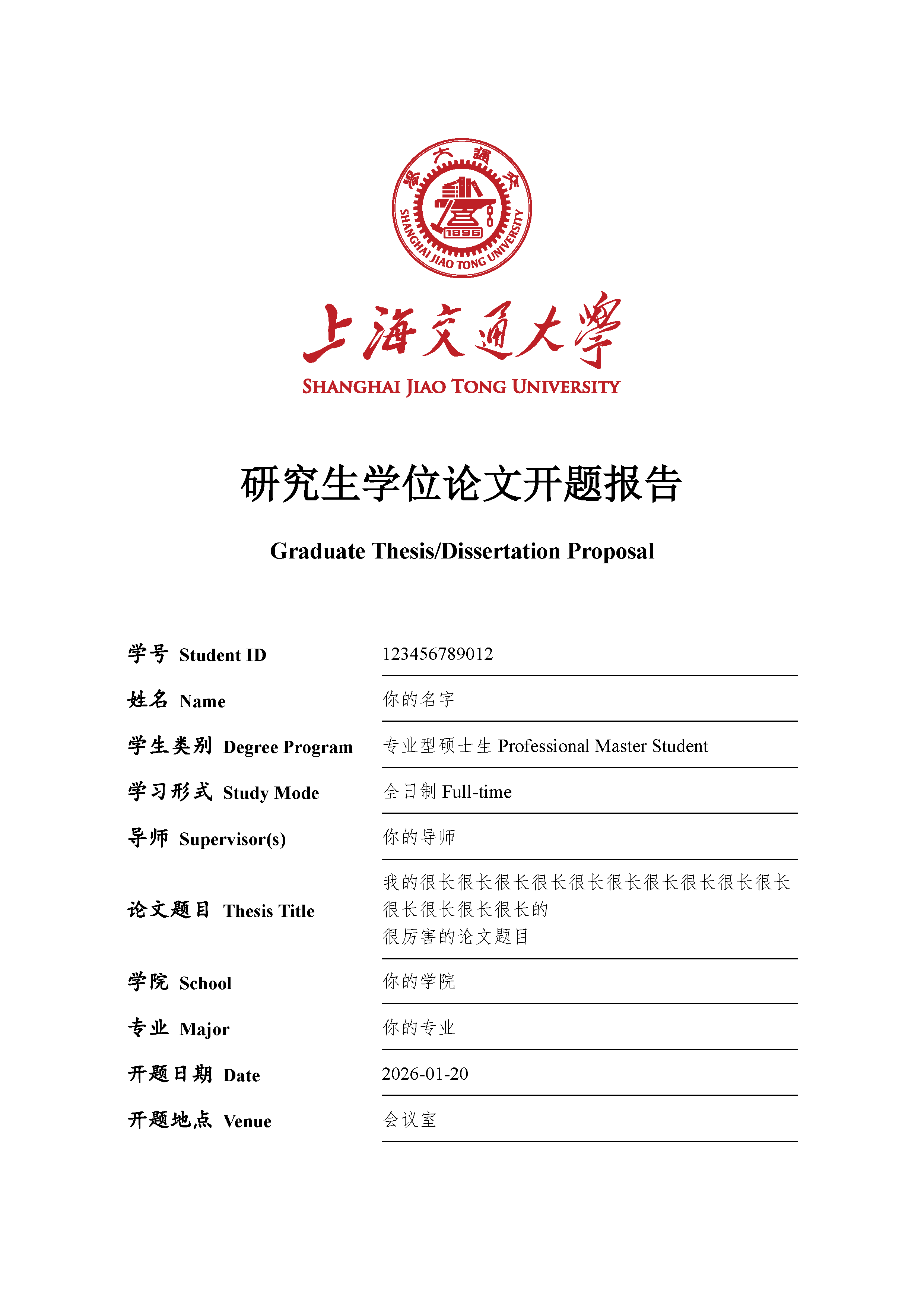 | 🎓 开题报告 | 上海交通大学研究生学位论文开题报告 | 0.1.0 |