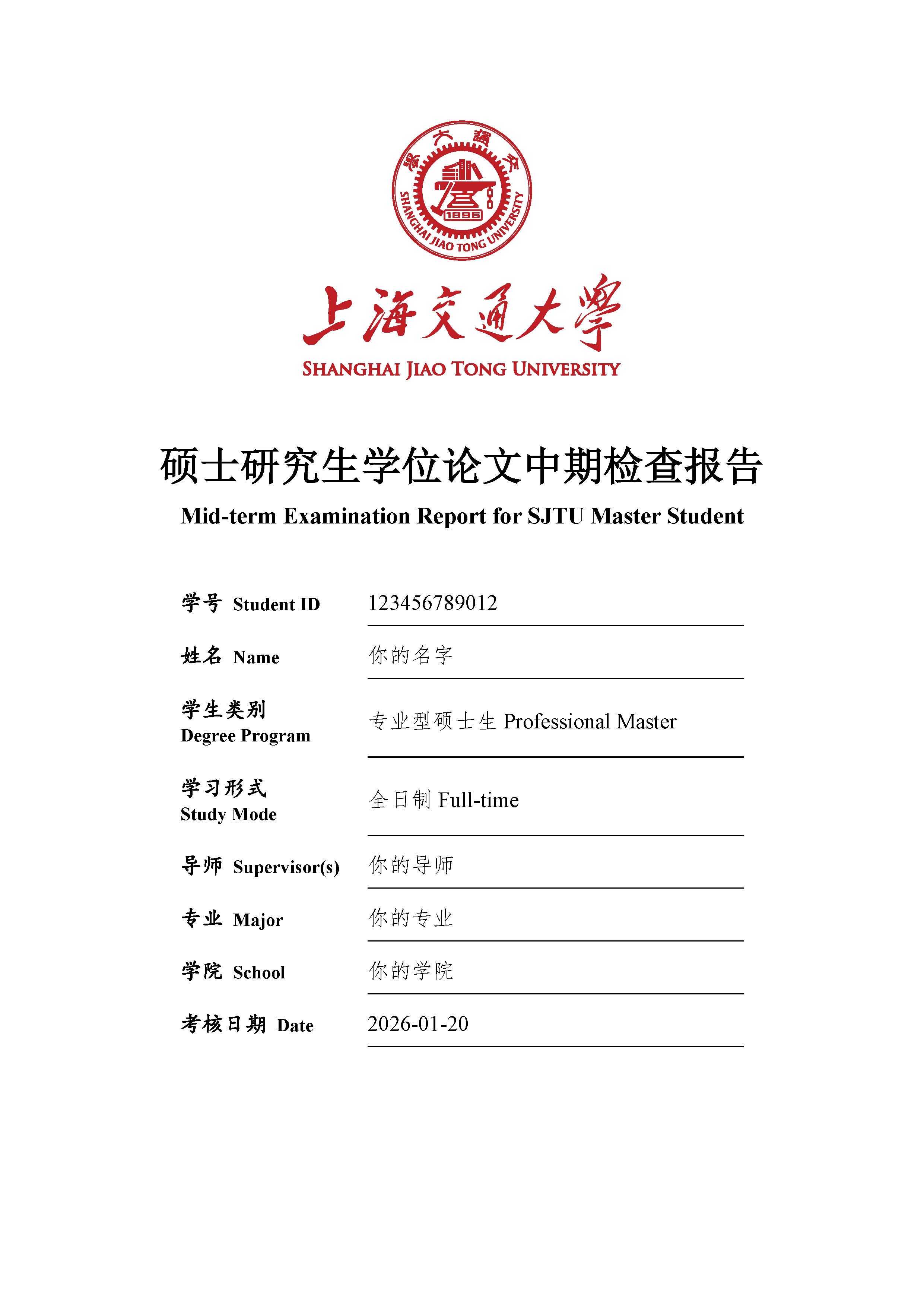 | 📋 中期检查 | 上海交通大学硕士研究生学位论文中期检查报告 | 0.1.0 |